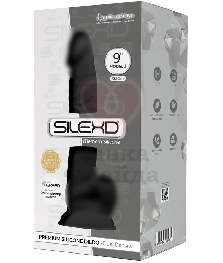 Фаллоимитатор Silexd Model 3 выполнен из бархатистого чёрного силикона с наполнителем Silexpan двойной плотности. Материал адаптируется к температурным изменениям: при нагреве становится более гибким и мягким, при охлаждении — твёрдым и жёстким. Чтобы остудить, поместите игрушку в холодильник — чем больше времени она там проведёт, тем твёрже станет. Для нагрева воспользуйтесь микроволновкой (30 секунд) или кипятком (2 минуты). Модель дополнена присоской для крепления к большинству плоских поверхностей и страпон-систем.