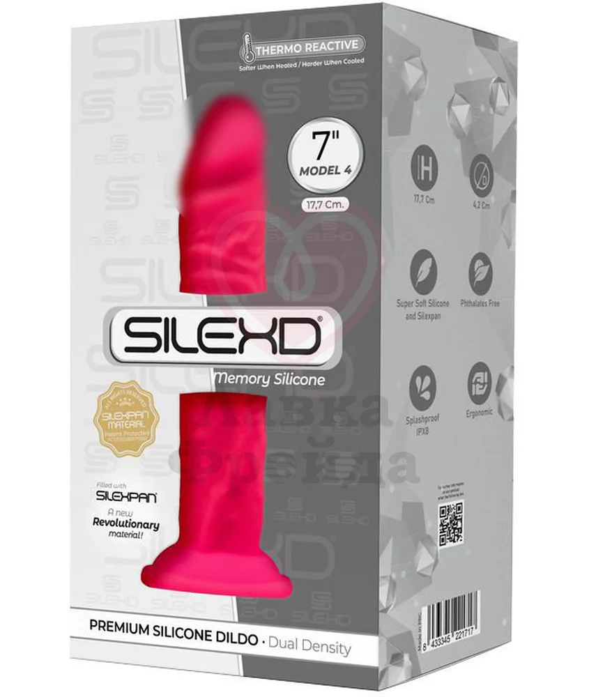 Фаллоимитатор Silexd Model 4 сделан из ярко-розового высококачественного силикона с наполнителем Silexpan двойной плотности. Особенность материала заключается в его способности меняться от воздействия температур: при высоких температурах он становится более гибким и мягким, а при низких — приобретает жёсткость и твёрдость.