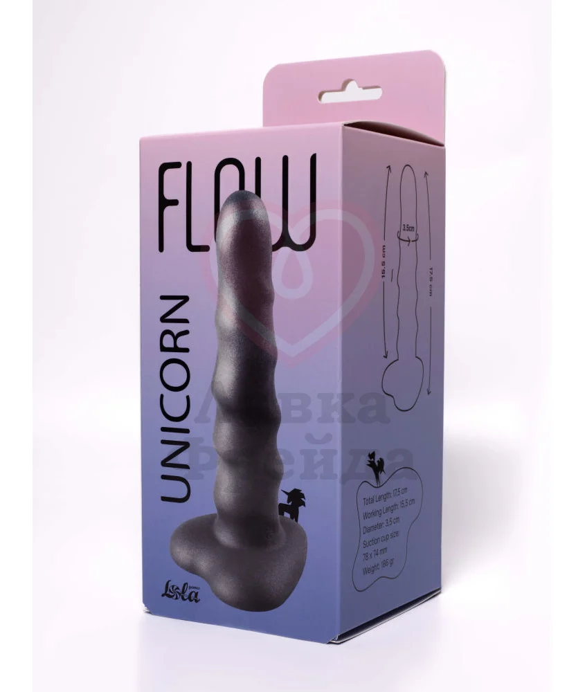 Фаллоимитатор Lola Games Flow Unicorn Black имеет в основании мощную присоску в форме сердечка, которую можно закрепить практически на любой плоской поверхности или совместить с большинством систем страпона. Фактурный ствол, покрытый ярко выраженными волнами, обеспечивает дополнительную стимуляцию внутренних эрогенных зон.