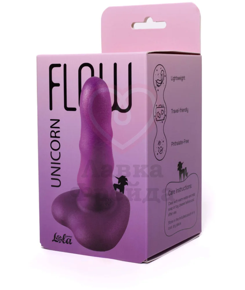 Фаллоимитатор Lola Games Flow Unicorn Mini Purple изготовлен из гипоаллергенного жидкого силикона, совместимого со смазками только на водной основе ― переливается целой палитрой фиолетовых оттенков и россыпью сверкающих частичек. Рельефный ствол, покрытый ярко выраженными волнами, предназначен для дополнительной стимуляции внутренних эрогенных зон.