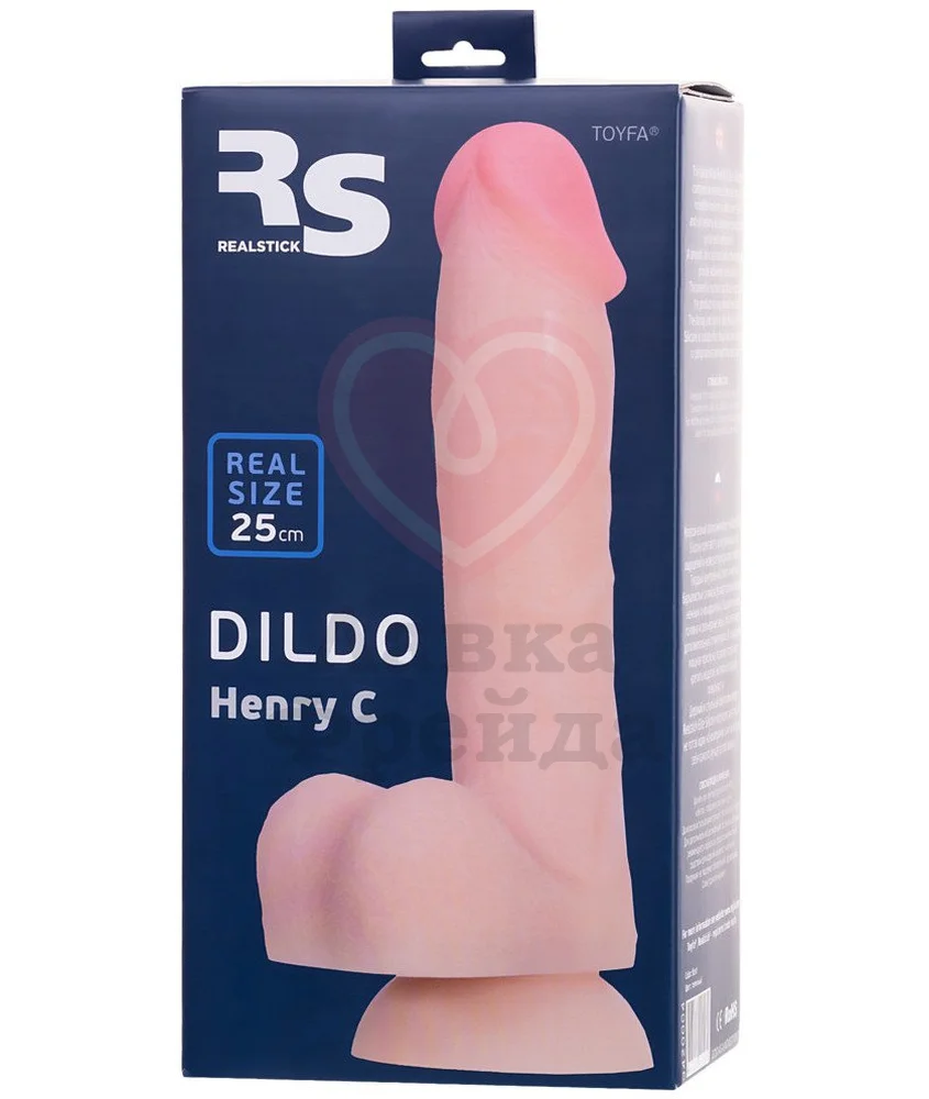 На основании игрушки расположена присоска, чтобы фаллоимитатор можно было использовать без рук, а также закреплять на трусиках для страпона. Общая длина модели RealStick Silicone Henry C 25 см, длина проникновения 19 см, а максимальный диаметр 4,3 см.