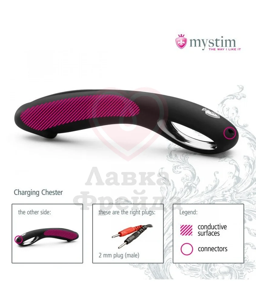 Charging Chester изготовлен из 100% медицинского силикона с элегантной изолированной металлической ручкой. Токопроводящие поверхности расположены по бокам стимулятора. Этот фаллоимитатор очень гибкий и абсолютно безопасный для здоровья. Его гладкая поверхность повторяет по ощущениям нежную кожу.
