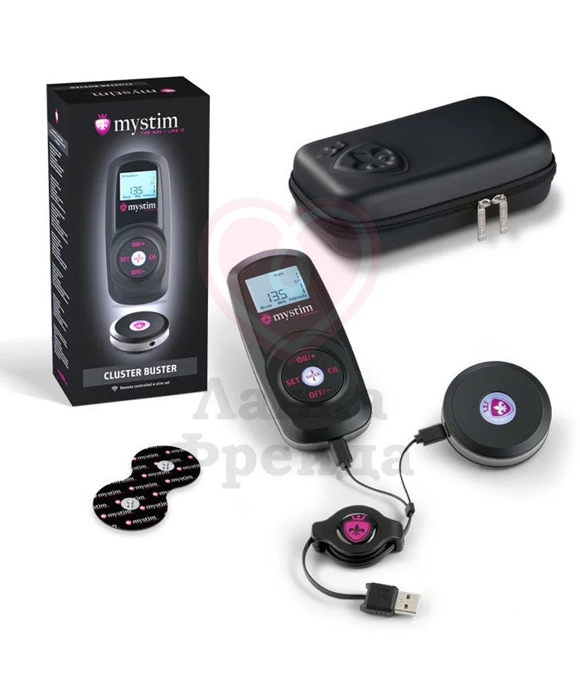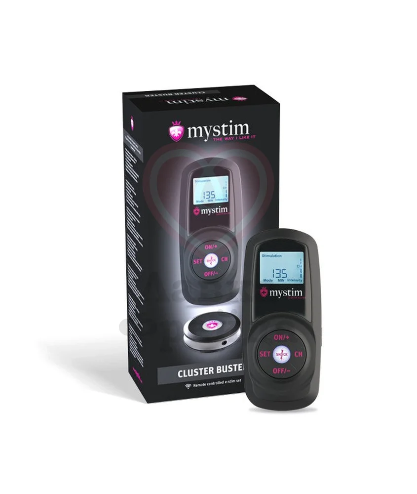 Новый беспроводной генератор импульсов Cluster Buster может управлять всеми стимуляторами Mystim одновременно! Больше не нужно путаться в кабелях.