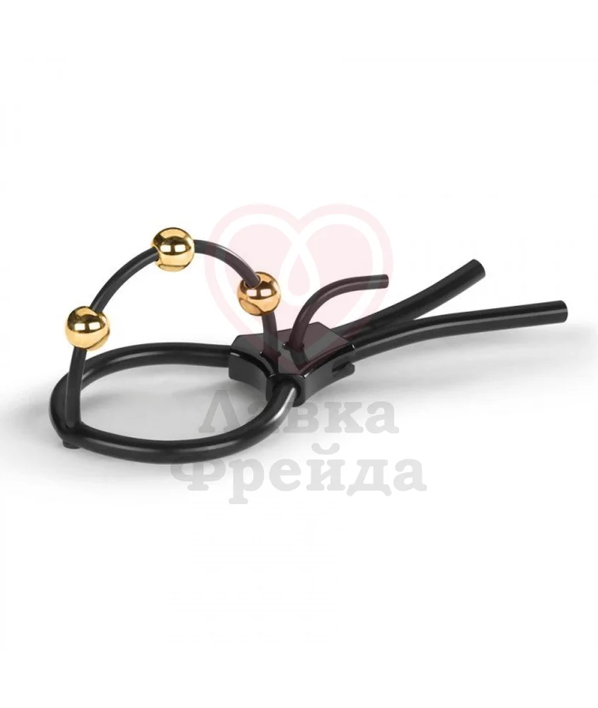 Золотое покрытие делает пульсацию и покалывание вокруг шариков особенно заметными. А возможность перемещать шарики на токопроводящем кольце поможет найти самую подходящую для стимуляции область головки члена.