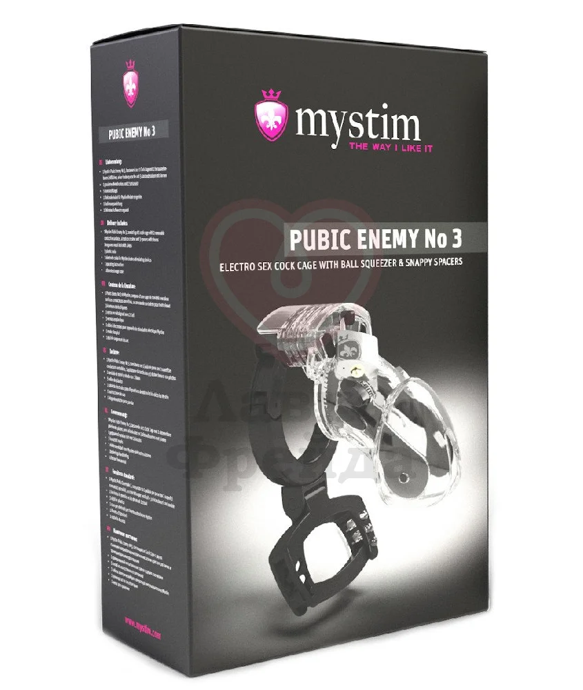 Пояс верности Mystim Pubic Enemy No 3 состоит из нескольких частей, которые делают игрушку максимально удобной и практичной. Как и многие модели до этого, главная часть девайса — пластиковый корпус, который имеет анатомическую форму и надевается на член во время игры. Внутри корпуса расположились электропроводящие части (силикон с добавлением платины), а по бокам есть отверстия для подключения генератора импульсов, который приобретается отдельно. Длина девайса 8 см, внутренний диаметр 3,5 см, а самый широкий внешний — 4,7 см.