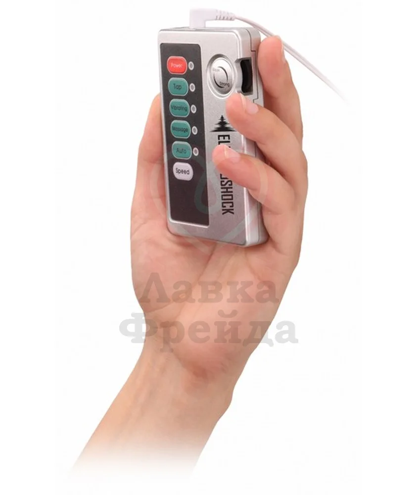 Электростимуляцию обеспечивает блок питания, который идет в комплекте и подключается к пробке с помощью провода. Мощность тока легко регулируется с помощью специального колесика на блоке. Электричество будет работать только когда пробка введена внутрь и оба стальных элемента касаются тела.