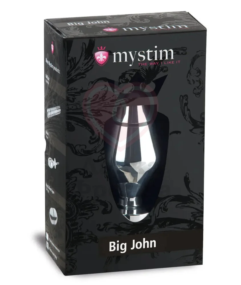 Большая анальная пробка Mystim Big John для интенсивной электростимуляции. Гладкая расширяющаяся форма для комфортного введения этой крупной пробки подойдет для опытных. Положительный и отрицательный контакты находятся возле самого кончика пробки, так что вы почувствуете стимуляцию уже при неглубоком введении.