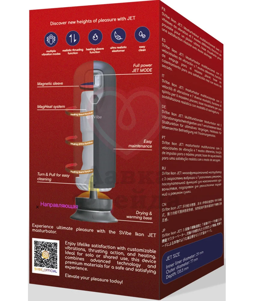 Автоматический мастурбатор SVibe Ikon Jet оснащен 7 вибро-режимами с 3 уровнями работы - от нежной пульсации до интенсивной вибрации. Удовольствие усиливают 6 режимов пенетрации и функция нагрева, которая обеспечивает максимально естественные ощущения от стимуляции. Режим JET включает на максимум все режимы для более яркого финала.