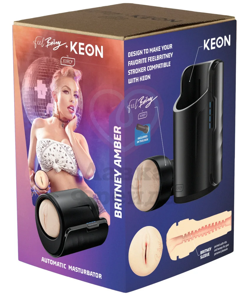 Мастурбатор из комплекта выполнен с реалистичными слепком известной порно-звезды Бритни Эмбер. Его можно использовать не только с Kiiroo Keon, но и самостоятельно. Нежный внутренний материал - термопластичный эластомер - обладает ярким рельефом. Его можно совмещать с лубрикантами на водной основе, а промыть вставку также можно отдельно - с водой, мылом и специальными средствами.