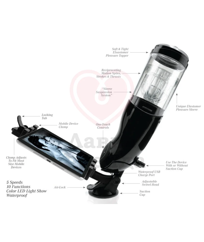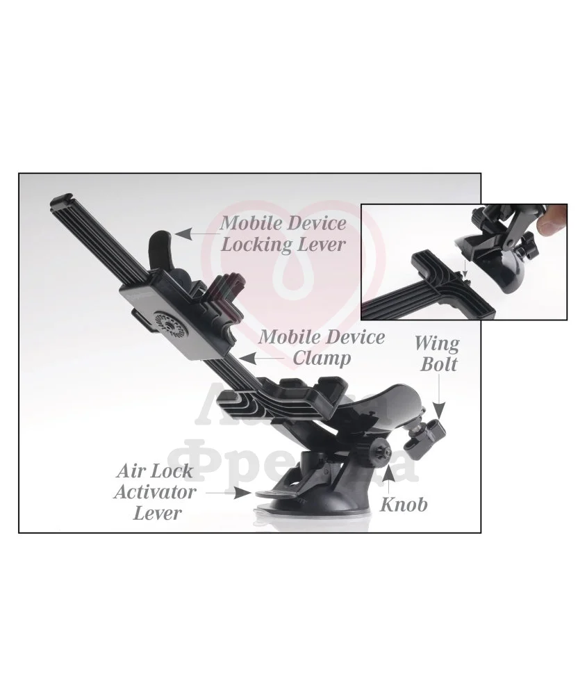 Девайс имеет мощную присоску, которая надежно крепится к любой плоской поверхности, - попробуйте мастурбацию без рук. Держатель для мобильных устройств регулируется по длине - вы можете включить любимый фильм и получать максимально яркие эмоции от мастурбации.