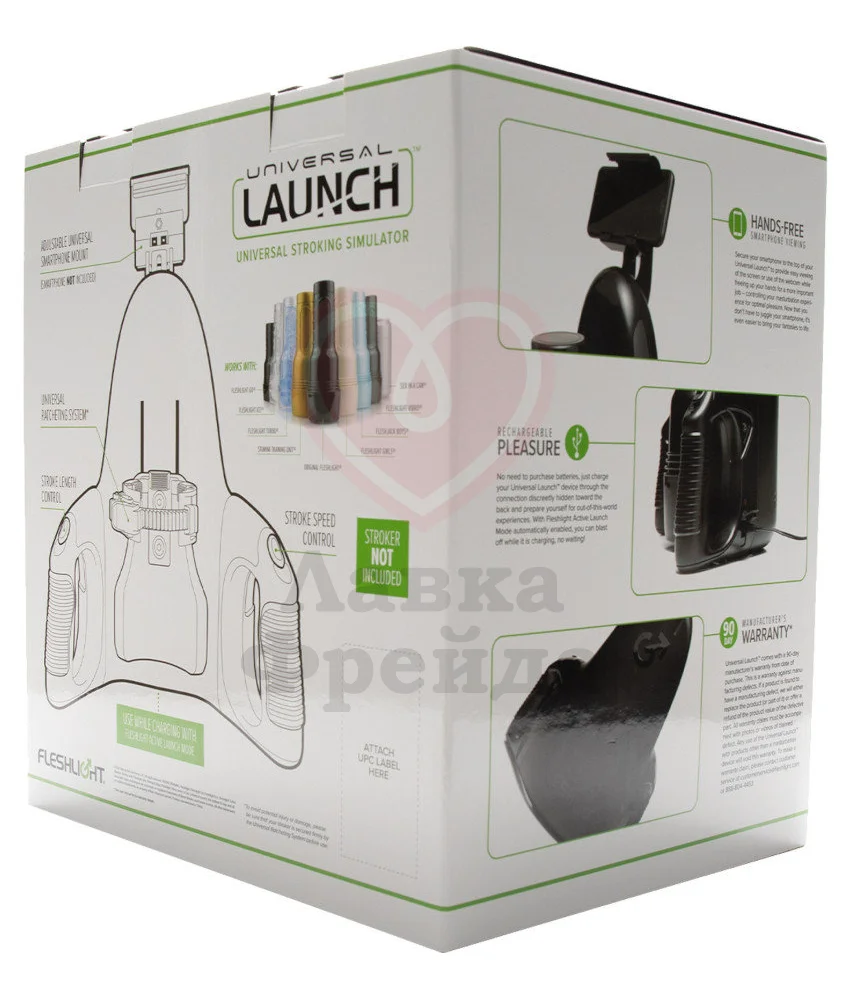 Fleshlight Universal Launch — девайс для автоматической мастурбации, подходящий для большинства мужских игрушек линейки Fleshlight. Удобный обхват, две ручки для регулирования скорости поступательных движений и крепление для смартфона — всё, чтобы просматривать ролики и испытывать максимум удовольствия от процесса.