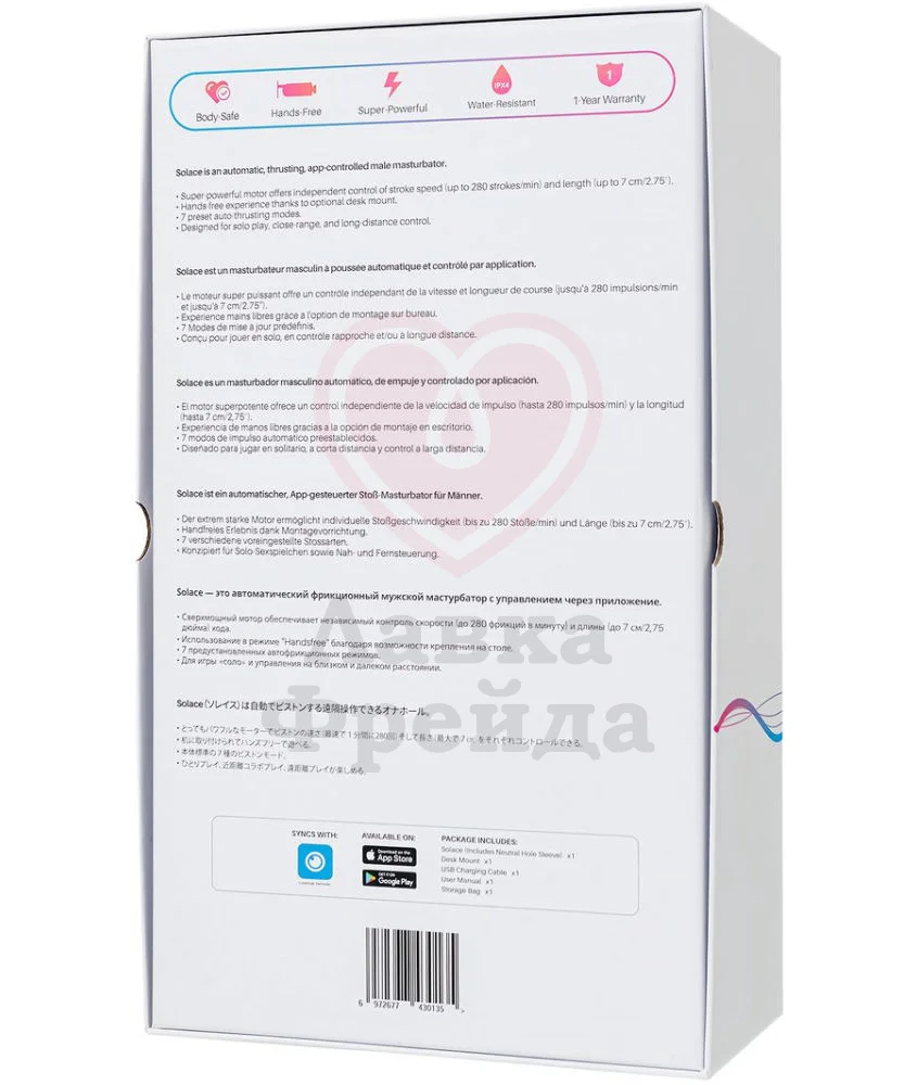 Автоматический мастурбатор Lovense Solace может совершать до 280 фрикций в минуту, а глубина хода достигает 7 см. Устройство можно синхронизировать с фильмами для взрослых, компьютерными играми и стримами, музыкальными ритмами и прочими устройствами через мобильное приложение Lovense Remote, там же вы можете генерировать бесчисленное множество паттернов фрикций, регулировать скорость и режимы, не ограничиваясь 7 базовыми настройками.