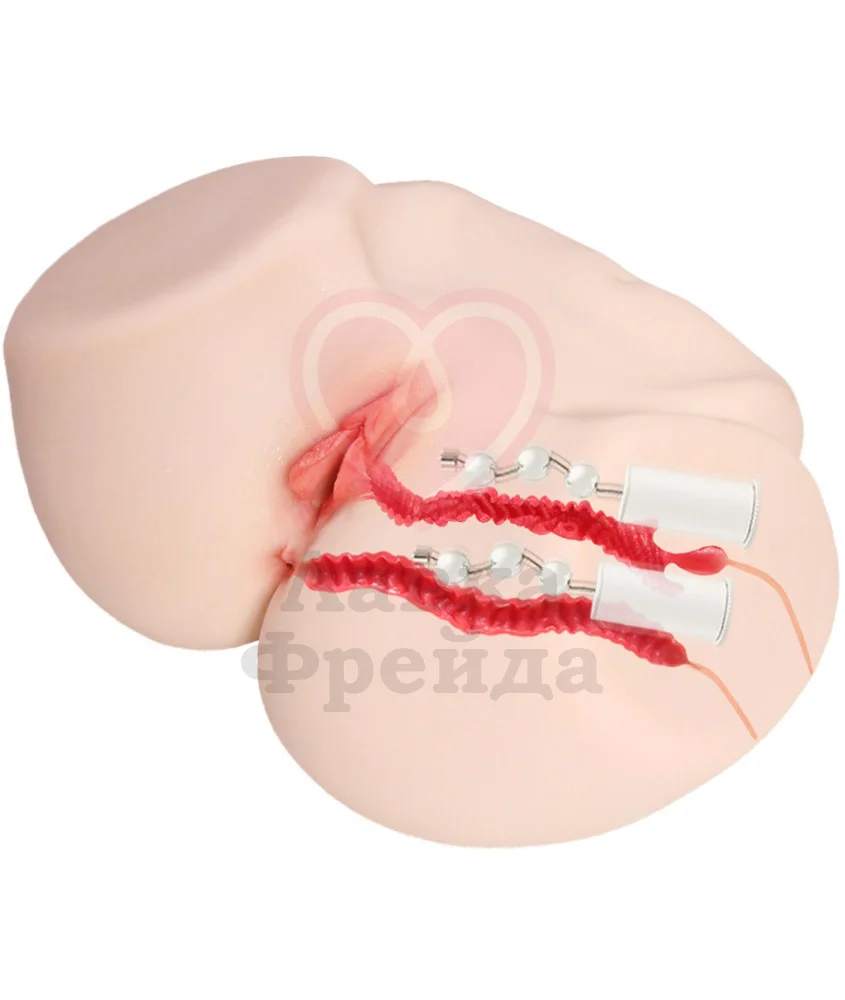 Мастурбатор-полуторс с двумя отверстиями для проникновения ― анусом и вагиной Kokos Jenny Onahole Real Vagina сделан из качественного термопластичного эластомера двойной плотности, реалистично имитирующего прикосновения к настоящей коже. Материал совместим с лубрикантами только на водной основе. Внутренняя часть имеет анатомическую структуру, с многочисленными бугорками, складками, зоной G и слизистой оболочкой, усиленную массажным рельефом в виде фактурных спиралей и пупырышек.