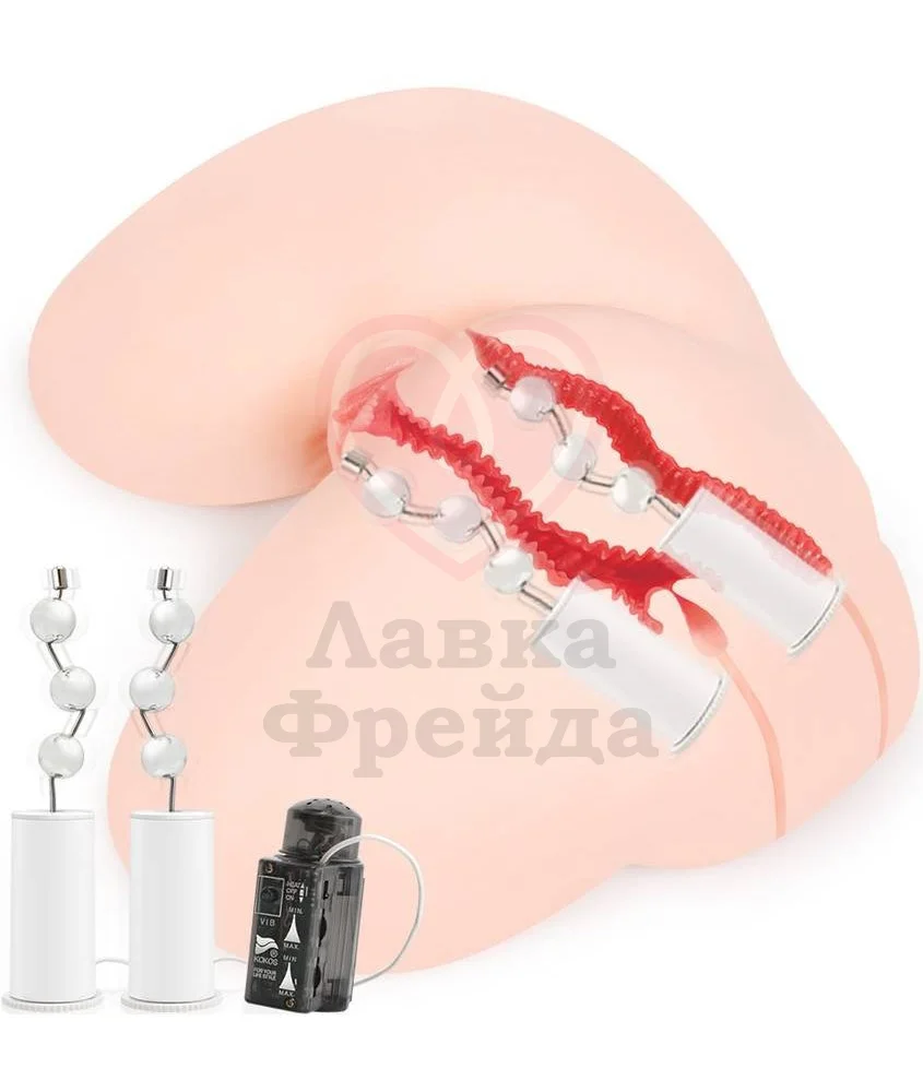 Мастурбатор дополнен вибро-элементами с шариками, которые при включении создают эффект сжатия и переминания, как во время яркого женского оргазма. Выносным пультом также регулируются два уровня вращения в обе стороны и их интенсивность. Игрушка работает от 4 батареек типа AA.