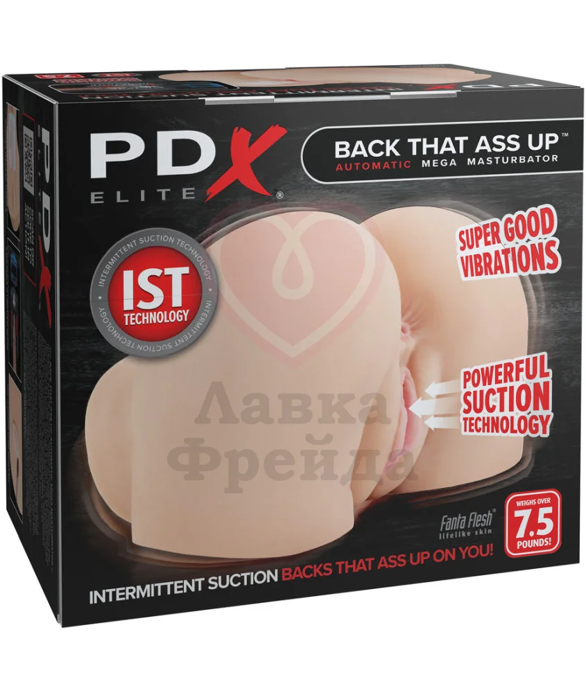 Мастурбатор Back That Ass Up имеет вагинальное и анальное отверстия, каждое из которых будет плотно обхватывать член, стимулируя его внутренней фактурой - канавками и рёбрышками. Удовольствие от игры дополнительно усилят 12 вибро-режимов и 6 режимов вакуумного всасывания, создающие эффект полного погружения.