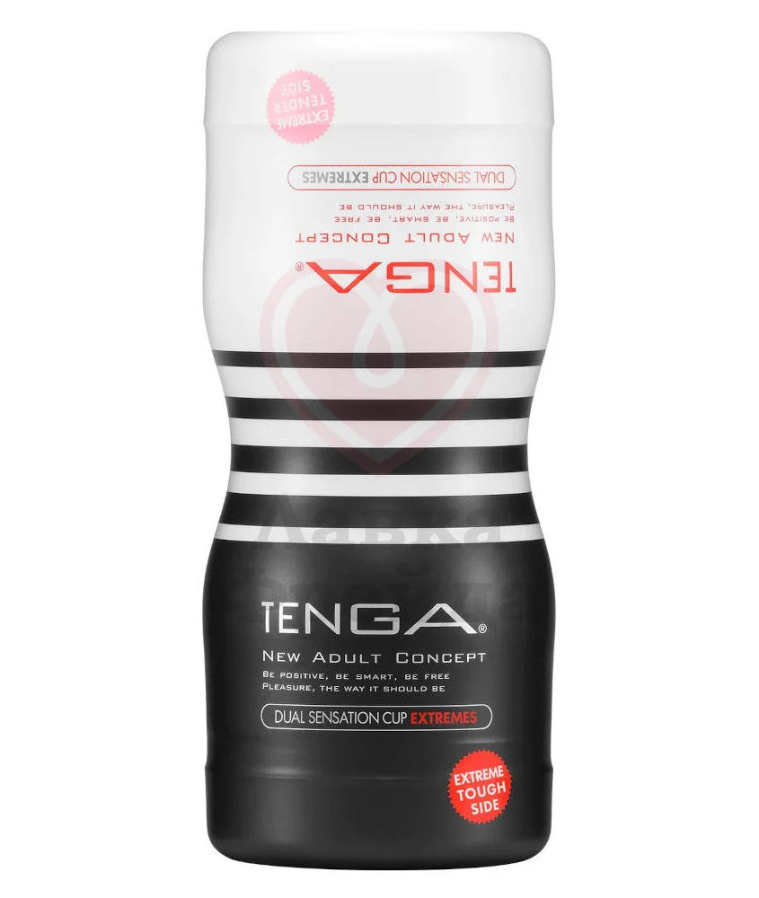 Tenga Dual Sensation Cup Extreme — мастурбатор для двойного удовольствия от двухстороннего дизайна: с одной стороны - супер-нежная стимуляция, а с другой — максимально сильная. Версия Extreme возводит контраст между двумя вариантами воздействия в новый абсолют: испытайте особенно ощутимую смену рельефа и диаметра — от мягкой ребристости светлой стороны до узкого геометрического узора с противоположного конца.