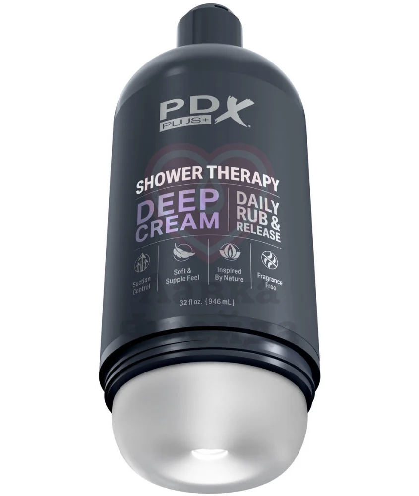 Корпус мастурбатора Pipedream Shower Therapy Deep Cream Frosted сделан в виде бутылки геля, поэтому вы можете поставить его на полочку в ванной, не стесняясь возможных гостей. Колпачок "бутылки" откидывается, регулируя уровень всасывания. В комплекте мощная круглая присоска с поворотным механизмом, с помощью которой вы сможете менять угол наклона и освобождать себе руки.