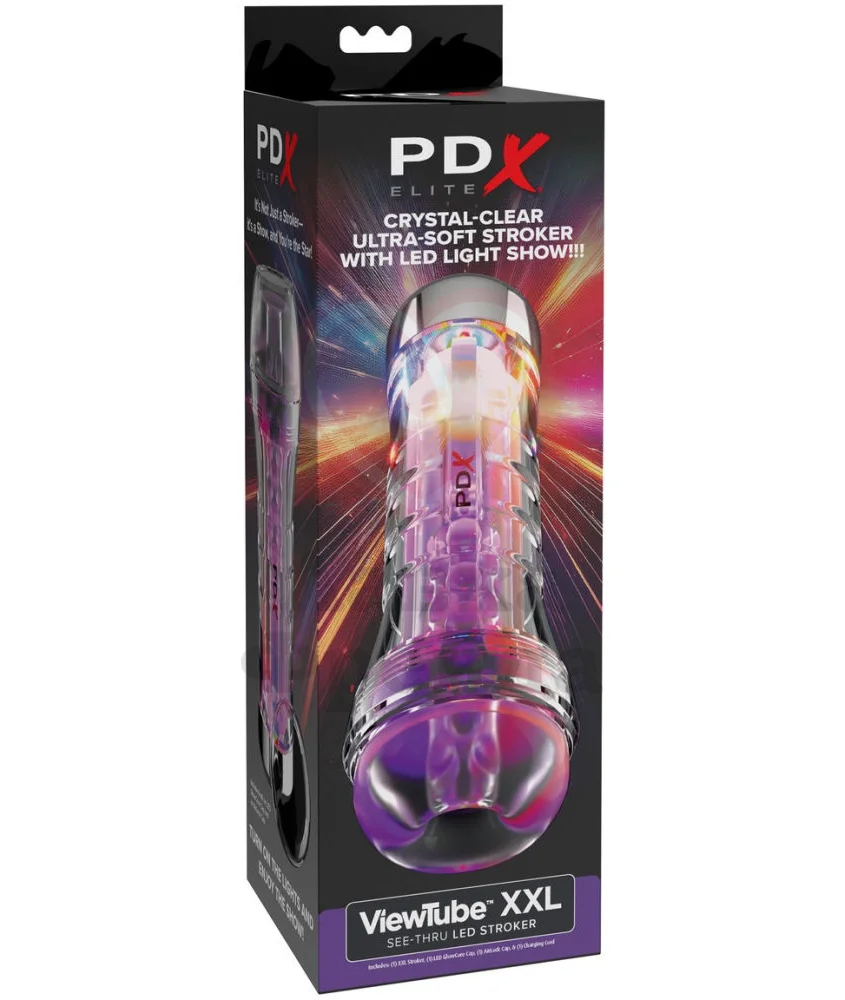 Нереалистичный мастурбатор Pipedream ViewTube XXL упакован в жёсткую пластиковую тубу с эргономичным захватом, украшенную яркой LED-подсветкой. Прозрачный корпус позволяет наблюдать за процессом, усиливая возбуждение от стимуляции. Внутренний рельеф с волнообразными выступами воздействует на ствол по всей длине, делая проникновение еще приятнее.