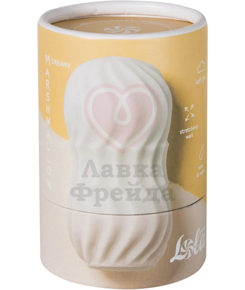 Мастурбатор Lola Games Marshmallow Dreamy White изготовлен из тактильно приятного термопластичного эластомера белого цвета ― мягкий и упругий материал, который хорошо тянется и быстро возвращается к исходной форме. Совместим с лубрикантами только на водной основе.