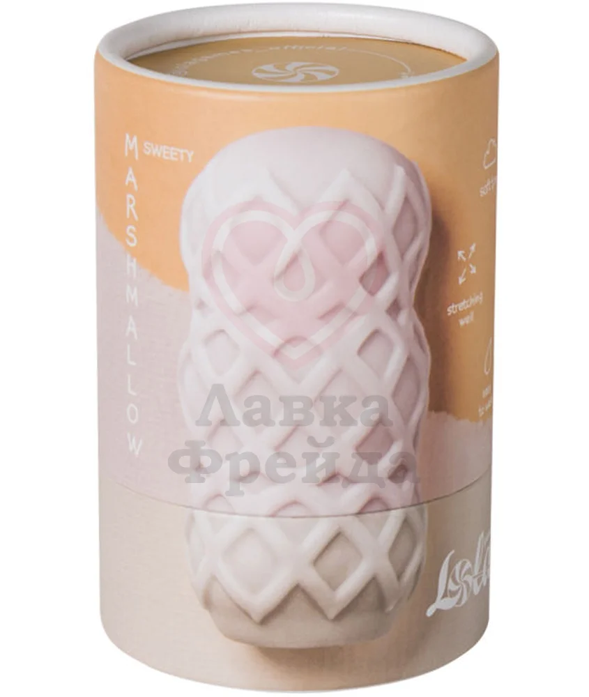 Мастурбатор Lola Games Marshmallow Sweety White сделан из мягкого и упругого термопластичного эластомера белого цвета ― хорошо тянущийся материал, быстро возвращающийся к исходной форме после использования. Одна сторона сделана в виде трёх гладких шариков, а вторая покрыта массажным рельефом в виде текстурной сетки.