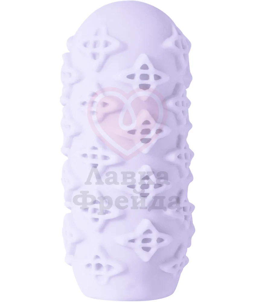 Имеет двойную массажную фактуру, усиливающую удовольствие от игры ― с одной стороны разнонаправленные текстурные рёбрышки, а с другой выпуклый ромбовидный узор. Чтобы очистить, тщательно промойте изделие в тёплом мыльном растворе, дайте ему полностью просохнуть, а затем обработайте специальной пудрой.