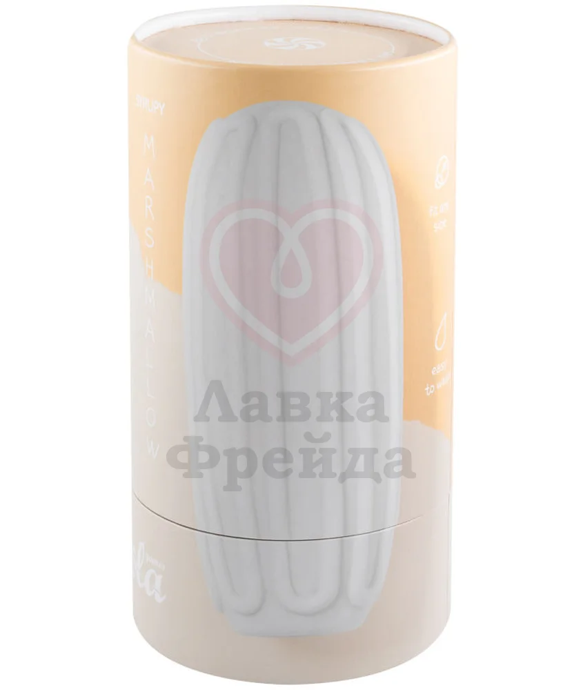 Мастурбатор Lola Games Marshmallow Maxi Syrupy White имеет двойную массажную фактуру, усиливающую удовольствие от игры ― с одной стороны выпуклые вертикальные полосы, а с другой миниатюрные текстурные косточки. Материалом для игрушки послужил мягкий и упругий термопластичный эластомер белого цвета, совместимый со смазками только на водной основе.