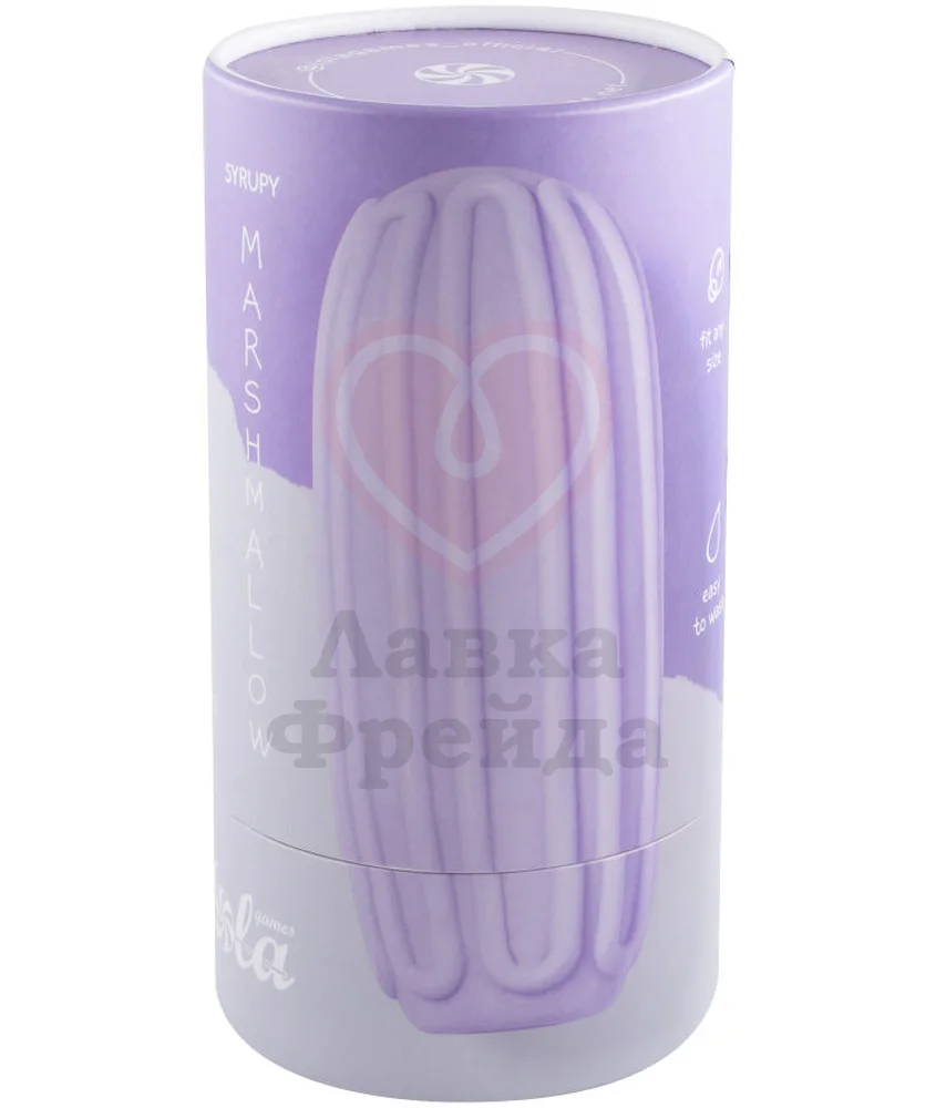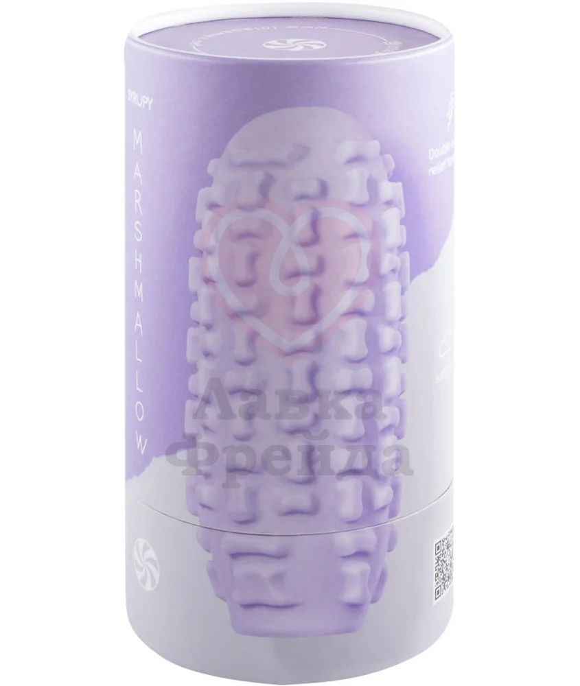 Мастурбатор Lola Games Marshmallow Maxi Syrupy Purple имеет двойную массажную фактуру, усиливающую удовольствие от игры ― с одной стороны выпуклые вертикальные полосы, а с другой миниатюрные текстурные косточки. Выполнено из мягкого и упругого термопластичного эластомера фиолетового цвета, совместимого с лубрикантами только на водной основе.