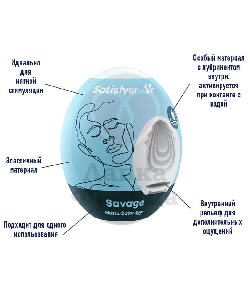 Нежное яичко изначально имеет компактные размеры - около 7 см в длину и 5 см в ширину, но эластичный материал помогает ему растягиваться до необходимых объемов. Игрушка предоставит полноценную стимуляцию по всей длине члена: от головки до самого основания. Особенный материал - термопластичный эластомер - уже имеет добавленный внутрь лубрикант. Именно поэтому применение такого мастурбатора максимально удобно: достаточно добавить немного воды, чтобы активировать смазку, и использовать его для вашего удовольствия. Версия Satisfyer Egg Savage порадует мягкой волнистой поверхностью для самых деликатной стимуляции.