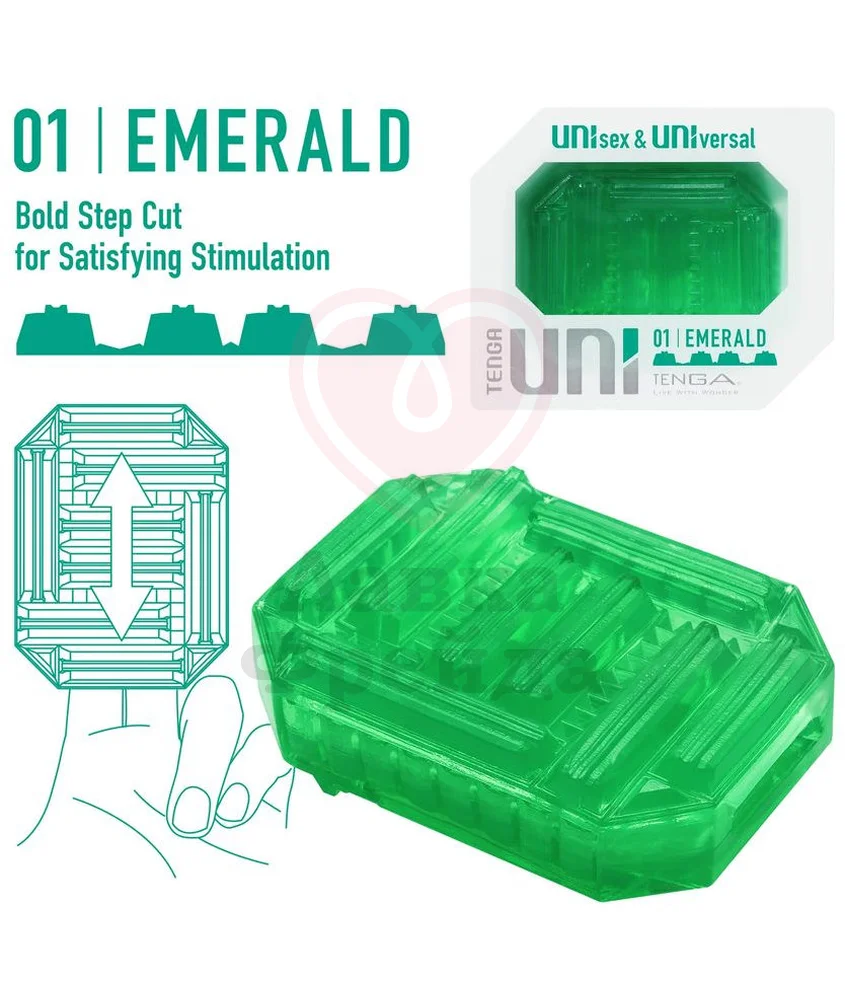 Коллекция Tenga Uni напоминает драгоценные камни, данный мастурбатор Emerald - яркий зеленый изумруд с фактурным внутренним рельефом в виде массажных валиков, усиливающих наслаждение от стимуляции. В комплект входит образец лубриканта. Мастурбатор одноразовый.