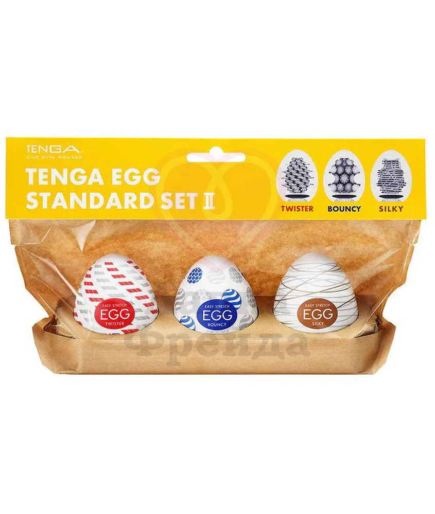 Набор Tenga Egg Standard Set 2 предлагает 3 альтернативных варианта одноразовых мастурбаторов с уникальными внутренними рельефами, упакованных в компактные яйцеобразные контейнеры. Каждое изделие имеет индивидуальную внутреннюю текстуру: от волнообразных выступов до плотных кольцевых структур, что позволяет оценить разнообразие ощущений и выбрать предпочтительный вариант.