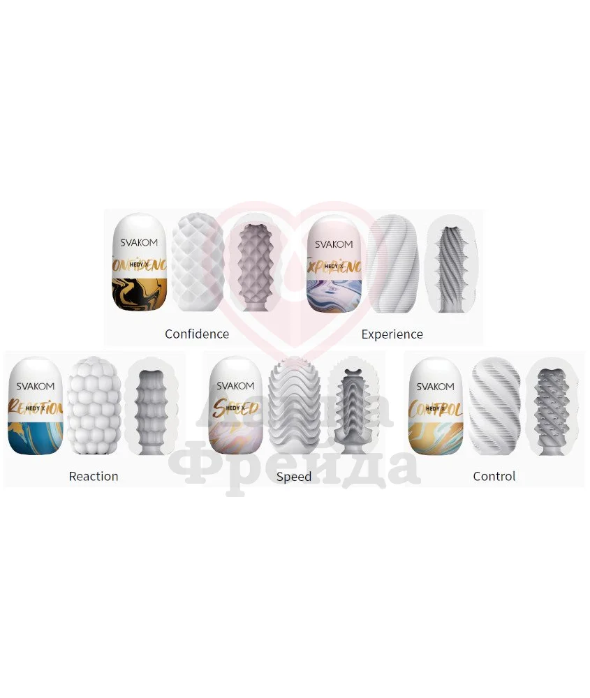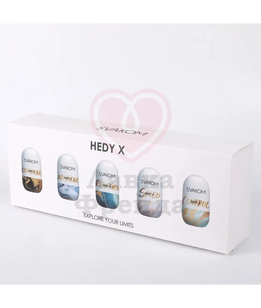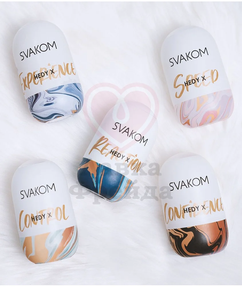 В комплект входят 5 нежных компактных мастурбаторов из серии Svakom Hedy X, обладающие разными рельефами, чтобы вы смогли оценить их все! Каждая игрушка упакована в прочный корпус-капсулу, внутри которой находится мягкое удовольствие из термопластичного эластомера.