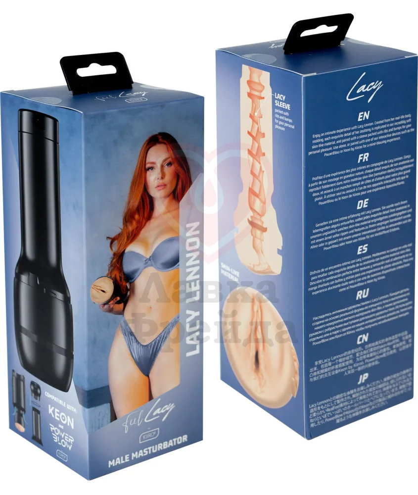 Корпус игрушки выполнен из прочного пластика: длина его составляет 22 см, а внешний диаметр 8,5 см. Внутри находится вставка из нежного эластомера со слепком вульвы и автографом Лэйси Леннон. Материал передает реалистичные ощущения, а плотный обхват и необычный рельеф обеспечит дополнительную стимуляцию.