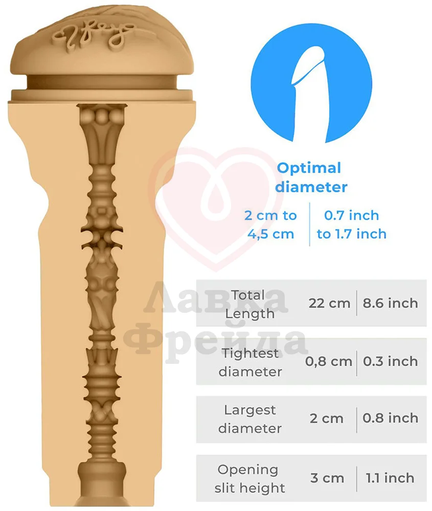 Корпус игрушки выполнен из прочного пластика: длина его составляет 20 см, а внешний диаметр 8,5 см. Внутри находится вставка из нежного эластомера со слепком вульвы и автографом Бритни Эмбер. Материал передает реалистичные ощущения, а плотный обхват и необычный рельеф обеспечит дополнительную стимуляцию.