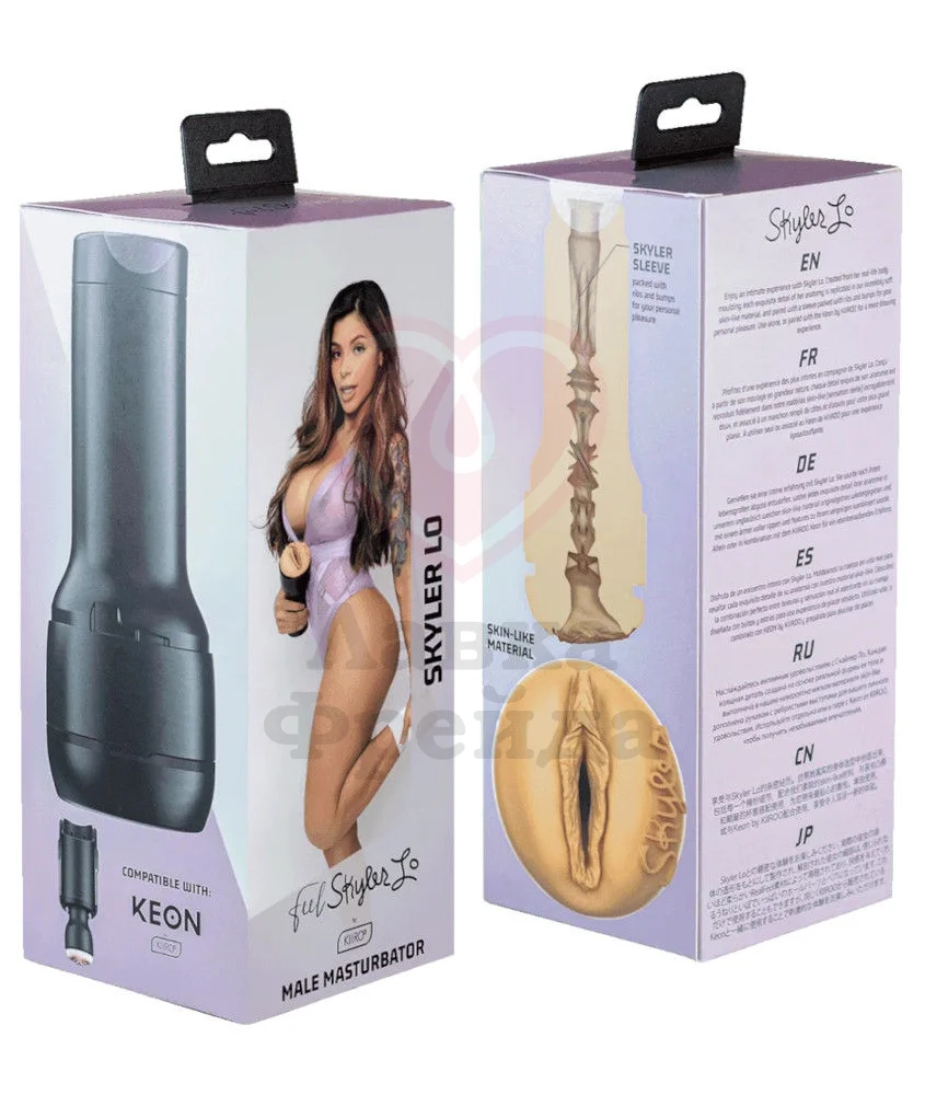 Корпус игрушки выполнен из прочного пластика: длина его составляет 22 см, а внешний диаметр 8,5 см. Внутри находится вставка из нежного эластомера со слепком вульвы и автографом Скайлер Ло. Материал передает реалистичные ощущения, а плотный обхват и необычный рельеф обеспечит дополнительную стимуляцию.