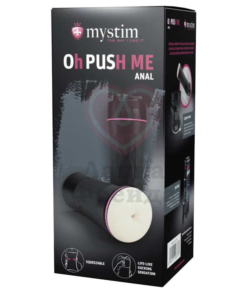 Мастурбатор Mystim Oh Push Me Anal состоит из прочного удобного корпуса с мягкой реалистичной вставкой из термопластичного эластомера. Особенность конструкции позволяет вам контролировать силу воздействия: средняя часть корпуса достаточно гибкая, чтобы реагировать на сжатие руки, а нижний клапан позволит регулировать эффект вакуума.