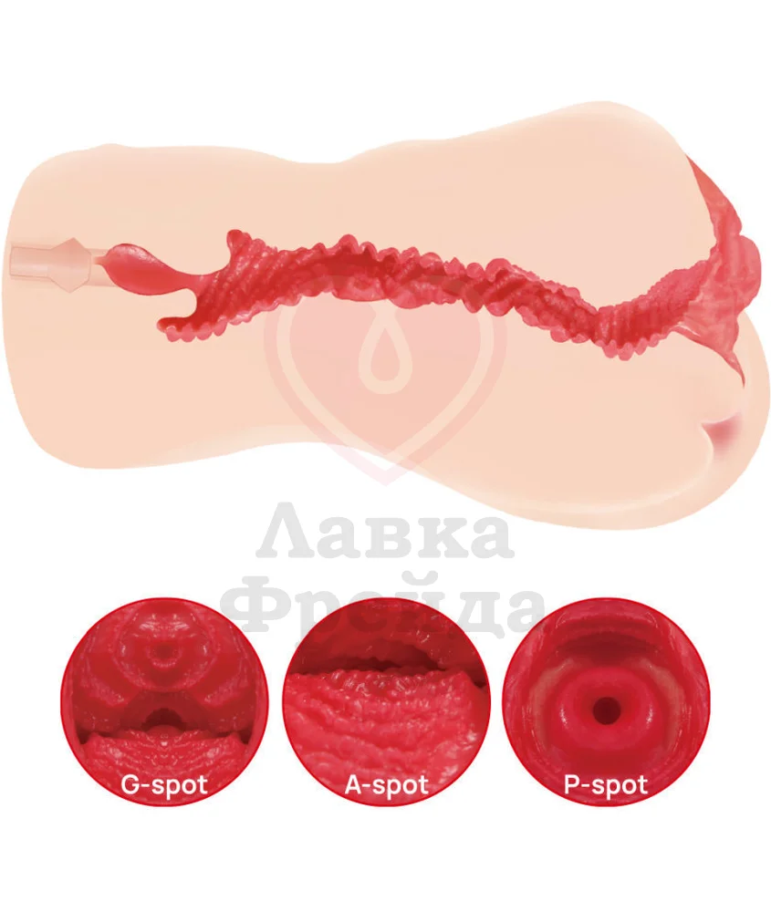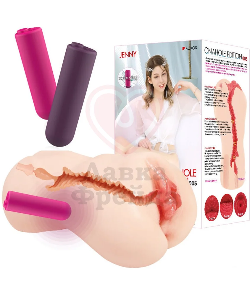 Мастурбатор Kokos Jenny Onahole Edition 005 имеет одно отверстие ― реалистичную вагину с половыми губами. Внутренняя часть имеет анатомическую структуру ― слизистая оболочка, выпуклая зона G, фактурные складки, которую дополняет трёхмерный массажный рельеф со спиралями и пупырышками.
