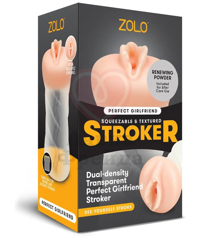 Мастурбатор Zolo Perfect Girlfriend сделан из качественного, тактильно приятного материала, нежного на ощупь. Внутренняя часть игрушки дополнена фактурным рельефом, который дополнительно стимулирует член, обеспечивая более яркие ощущения от мастурбации. Узкое вагинальное отверстие с нежными губками представлено в реалистичном телесном цвете, а сам тоннель для любви - полупрозрачный.