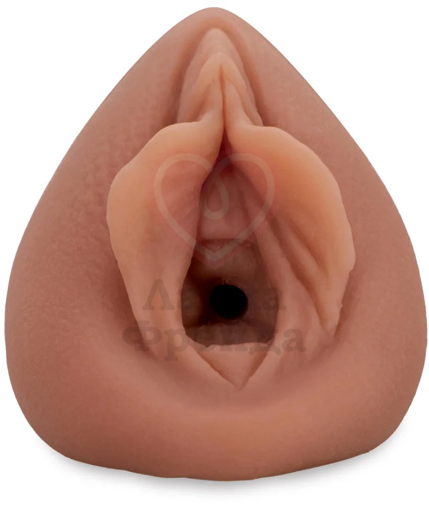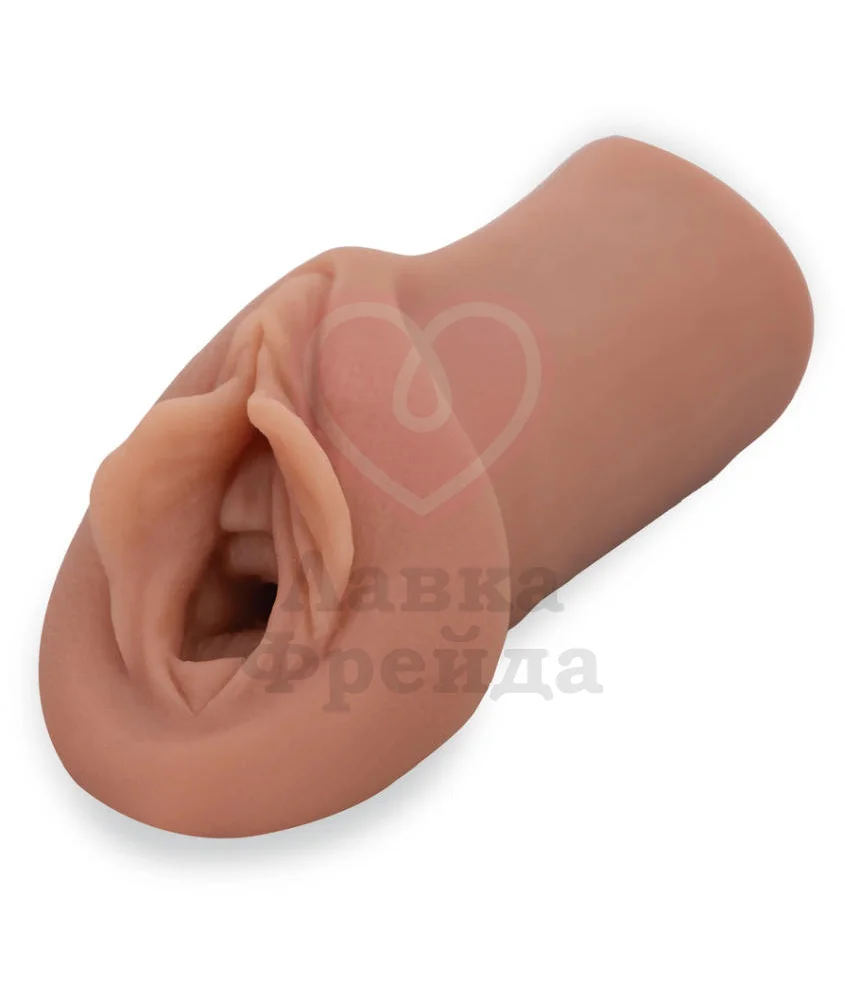 Внешняя часть удобно ложиться в ладонь, не выскальзывая даже от интенсивных движений. Вход сделан в виде реалистичной женской вагины с половыми губами, цвета загорелой кожи. С лубрикантом на водной основе проникновение будет более скользящим, комфортным и приятным. Очищать тёплым мыльным раствором или тойклинером.