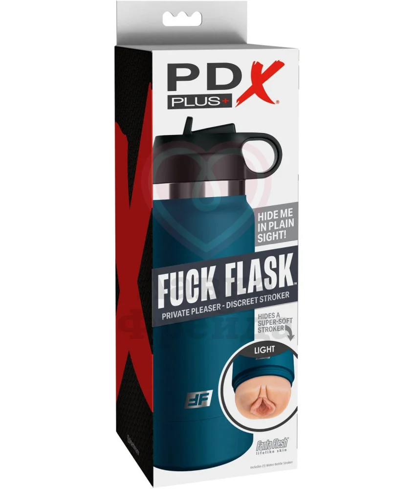 Мастурбатор Fuck Flask выглядит как бутылка для воды, поэтому вы сможете незаметно брать его с собой в любые поездки. Сама игрушка сделана в форме реалистичной вагины, с естественно смотрящимися половыми губами. Аксессуар дополнен простым, но эффективным откидным всасывающим клапаном, за счет чего во время использования будет складываться ощущение, что вам делают минет.