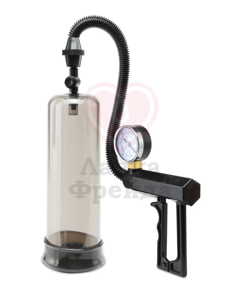 Помпа мужская PISTOL-GRIP POWER - профессиональная помпа для создания эрекции путем откачки воздуха с помощью поршня-пистолета. Поршень-пистолет позволяет легко и быстро откачивать воздух. Качественный уплотнитель из мягкой резины плотно обхватывает пенис во время процедуры, создавая абсолютную герметичность и вакуум внутри колбы. Для контроля за давлением в колбе, помпа оснащена монометром. Для снятия лишнего давления на помпе встроен специальный клапан, который срабатывает с одного нажатия кнопки. Прозрачная колба позволит видеть процесс увеличения пениса. В подарок от производителя - эрекционное кольцо, которое поможет продлить эрекцию после применения помпы. Кольцо сначала нужно надеть на край помпы с уплотнителем, а после создания нужной степени эрекции сдвинуть с помпы на основание пениса. Кроме того, использование эрекционного кольца служит механическим пролонгатором: сдавливание кольцом продлит эрекцию и удовольствие, но отложит эякуляцию. Если использовать вакуумную помпу в качестве мастурбатора, то после оргазма, отсоединить цилиндр от шланга и промыть теплой водой с мылом. Уход за вакуумной помпой очень прост. Длина колбы 20,5 см, диаметр 8 см. Цвет: чёрный. Материал: PVC-Plastic.