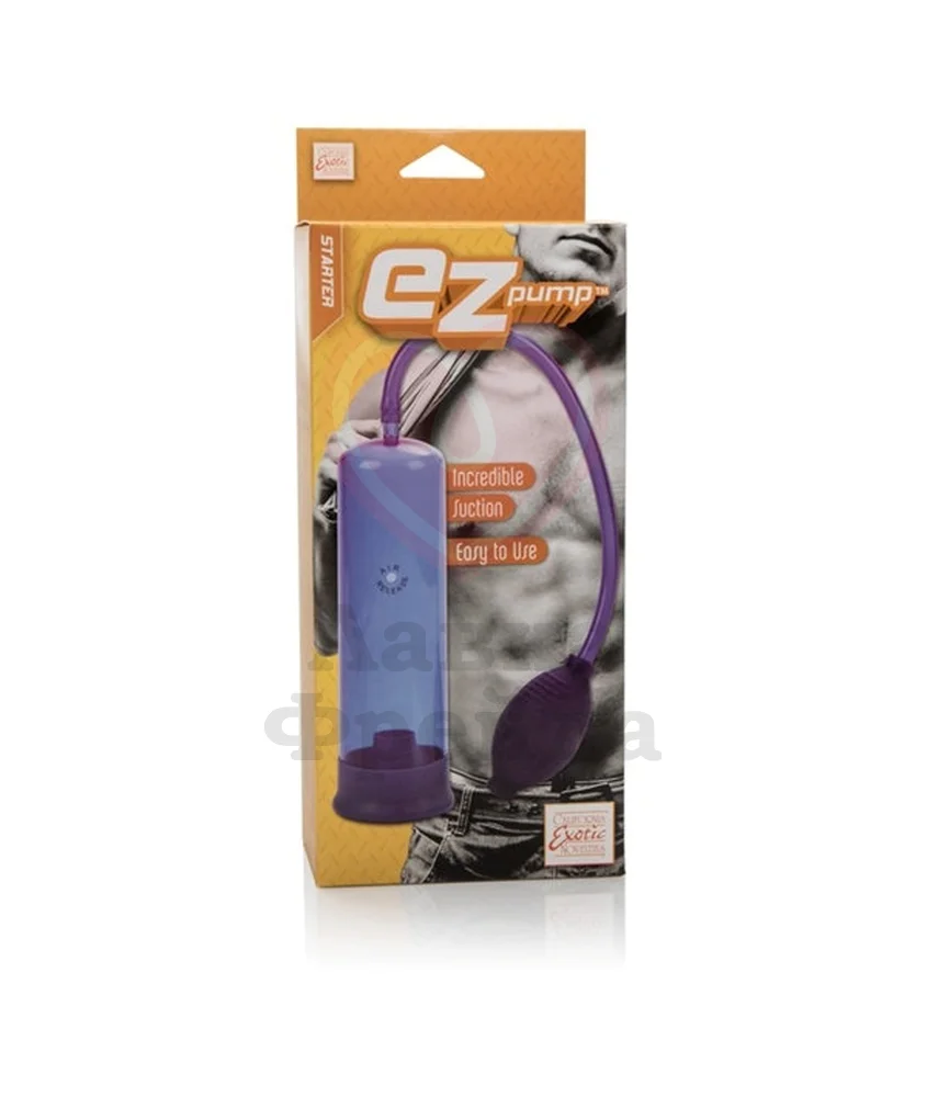 Вакуумная помпа E-Z Pump выполнена из фиолетового ABS-пластика. Длина колбы – 19 см. Диаметр – 5 см. Помпа положительно влияет на мужское здоровье, улучшая тонус сосудов и кровообращение. Игрушка позволяет добиться крепкой эрекции и увеличения продолжительности полового акта. При регулярном использовании вы сможете увеличить длину и обхват пениса. Полупрозрачный пластик позволяет отслеживать результаты. Поместите пенис внутрь колбы, плотно прижав её к лобку. Зажмите пальцем отверстие и несколько раз нажмите на грушу для создания эффекта вакуума. После достижения эрекции впустите воздух, убрав палец.