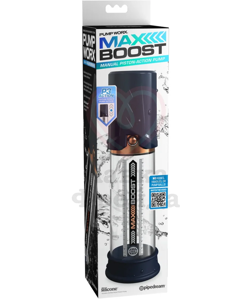 Помпа Pump Worx Max Boost разработана для стимуляции кровотока, повышения силы и качества эрекции. Ее конструкция со встроенным ручным поршневым насосом обеспечивает простоту использования без необходимости подключения шлангов и зарядки аккумуляторов. Прозрачная трубка позволяет визуально отслеживать процесс увеличения размеров члена, а мягкая насадка из силикона приятно прилегает к коже. Помпа оснащена кнопкой для быстрого сброса давления, а его безмоторная конструкция позволяет использовать его в ванне или душе.