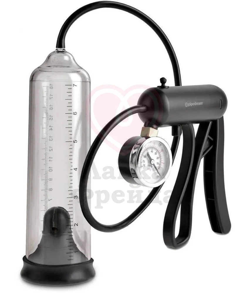 Вакуумная помпа Pump Worx Pro-Gauge Power Pump создает низкое давление вокруг члена, провоцируя прилив крови к стволу, как и во время естественного возбуждения, что улучшает мужскую эрекцию, продлевает её, а также мгновенно увеличивает фаллос без побочных реакций.