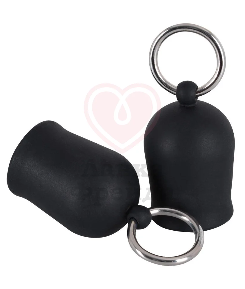 Чёрные присоски Black Velvets из нежного медицинского силикона сделают соски твердыми и очерченными. Вакуум усилит кровообращение и повысит чувствительность эрогенной зоны. Сожмите колбочки по краям, прижмите к соскам и отпустите - присоски зафиксируются на сосках. Металлические колечки не только украсят девайс, добавляя образу покорности, но и позволят эротично тянуть грудь в сторону наслаждения. Общая длина присоски 4 см, а диаметр 2 см.