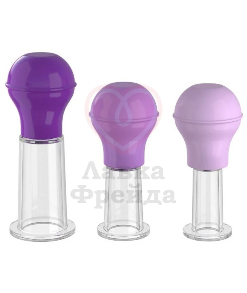 Трио вакуумных присосок для эрогенных зон Fantasy For Her сделают соски и область клитора более чувствительными для ласк и стимуляций, усиливая ощущения как от прикосновений партнера, так и соло. Прикладывайте чашки к коже для создания уплотнения и осторожно сжимайте силиконовую часть игрушки, активируя всасывание и увеличивая приток крови к чувствительным зонам. Комплект изготовлен из нежного силикона и прочного пластика, которые легко и просто моются как теплой водой с мылом, так и специальными очищающими средствами для игрушек.