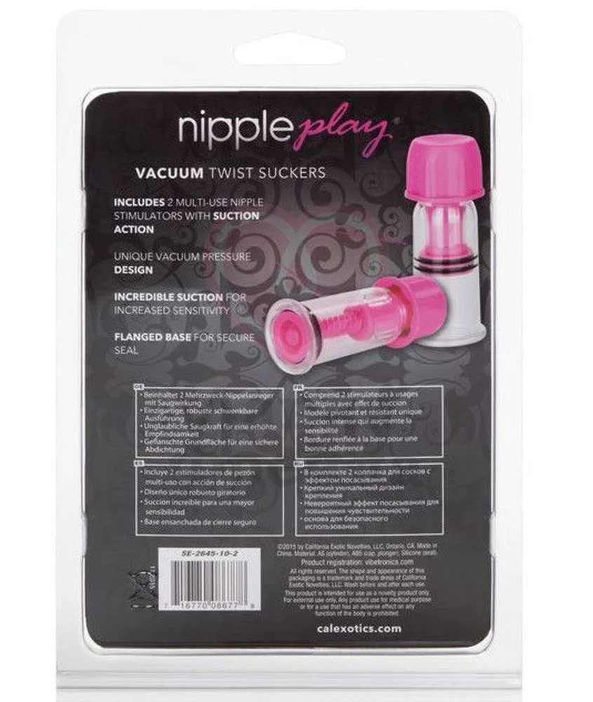 Устройте незабываемую игру для своих сосков с присосками Vacuum Twist Suckers. Воздействие вакуума на эрогенную зону усиливает ощущения и возбуждает, а яркий розовый цвет разыграет вашу фантазию. Их можно использовать и для других эрогенных зон. например, поместить на клитор.