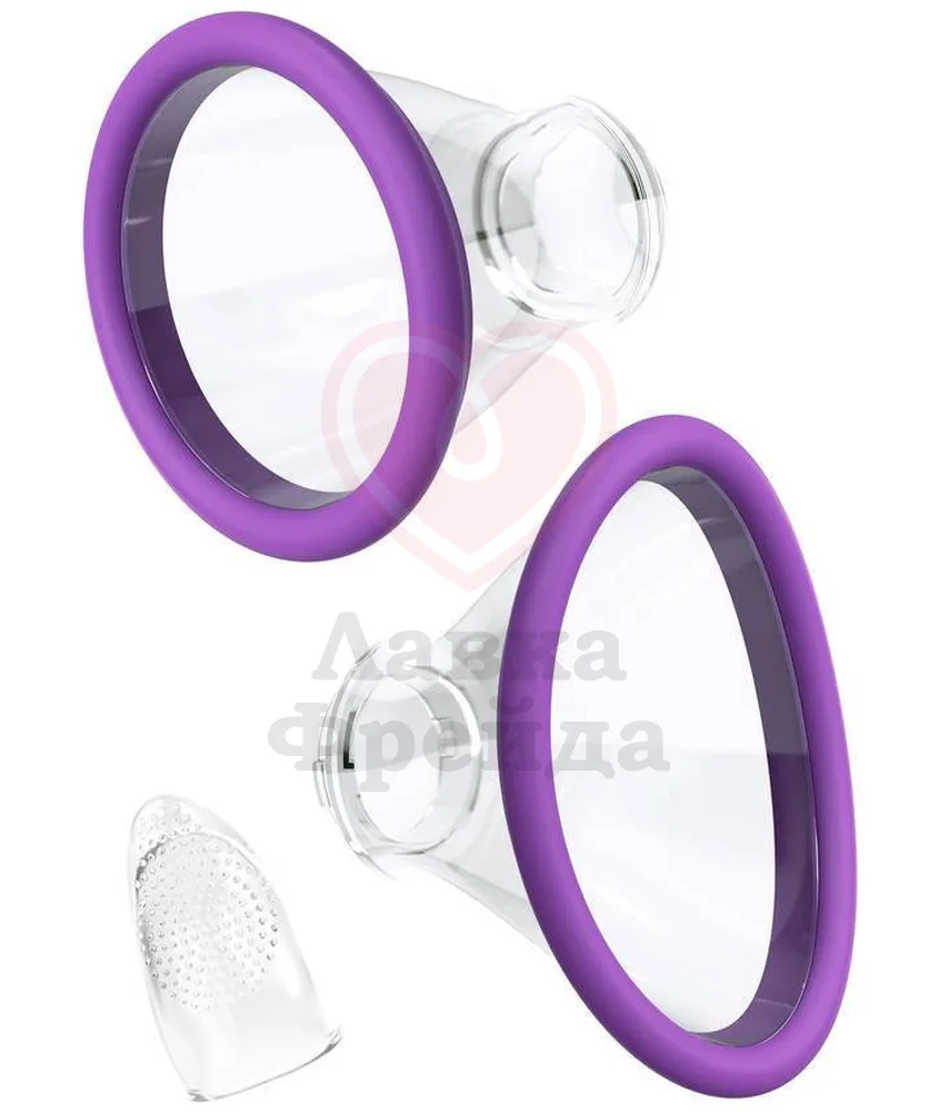 Круглая насадка помпы предназначена для чувствительной области груди и сосков, а овальная усиливает кровоток в области вульвы, делая половые губы и клитор максимально чувствительными и набухшими. Три режима вакуумного всасывания и 7 режимов работы язычка усилят возбуждающий эффект.