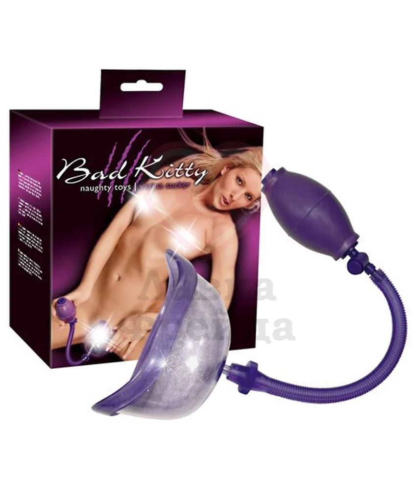 Вагинальная помпа Bad Kitty выполнена в фиолетовом цвете и идеально подходит для улучшения кровообращения половых органов. Она изготовлена из безопасного и прочного ABS-пластика, который легко чистится и выдерживает сильное вакуумное давление. Просто приложите аксессуар к заветному месту и начните откачивать воздух.