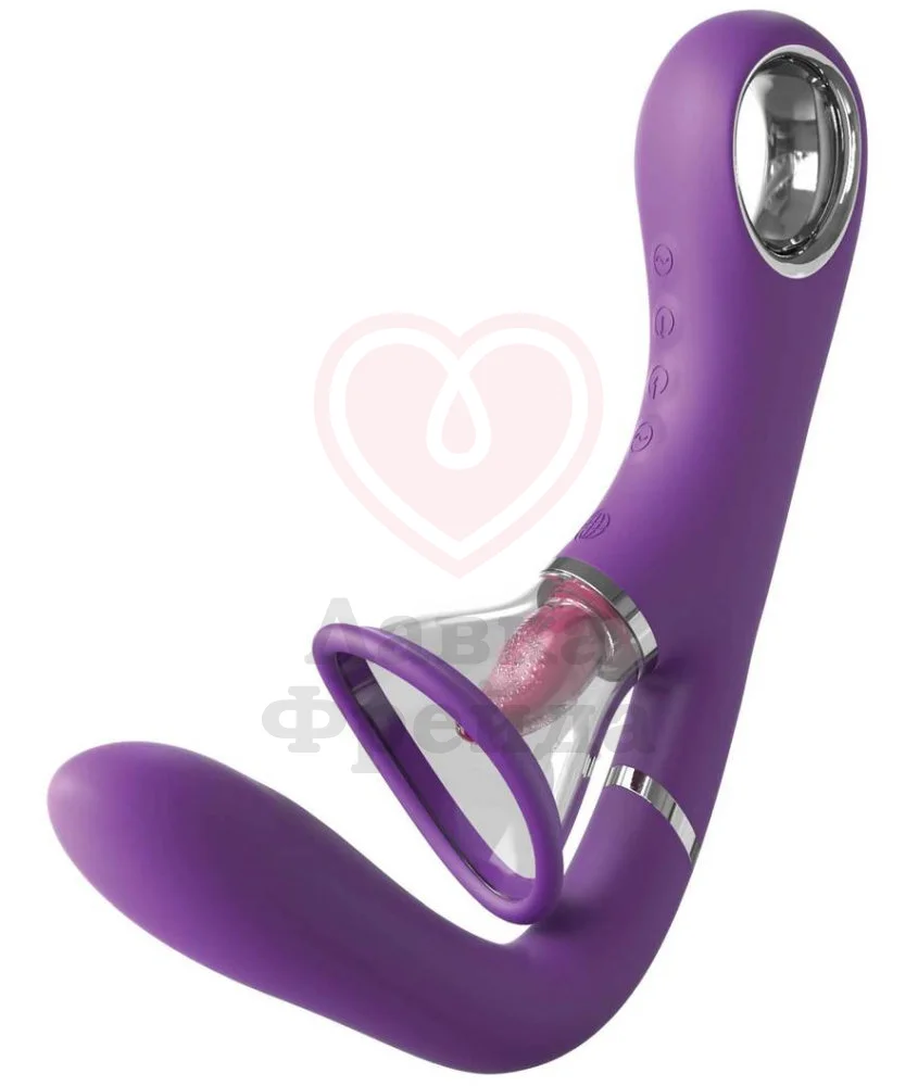 Fantasy For Her Ultimate Pleasure Pro - игрушка, которая обеспечит одновременную стимуляцию зоны G, половых губ и клитора, что быстро приведет к оргазму. На зону G воздействует небольшой гибкий отросток, имеющий 10 вибро-режимов. Клитор ласкает подвижный язычок с 7 паттернами движения, а вакуумная помпа с 3 мощностями всасывания отвечает за стимуляцию области половых губ. Управление происходит кнопками, находящимися на корпусе аксессуара. Четыре мощных движка перезаряжаются через USB кабель. Использовать с лубрикантом на водной основе. После каждого использования очищать мыльным раствором или средством для игрушек.