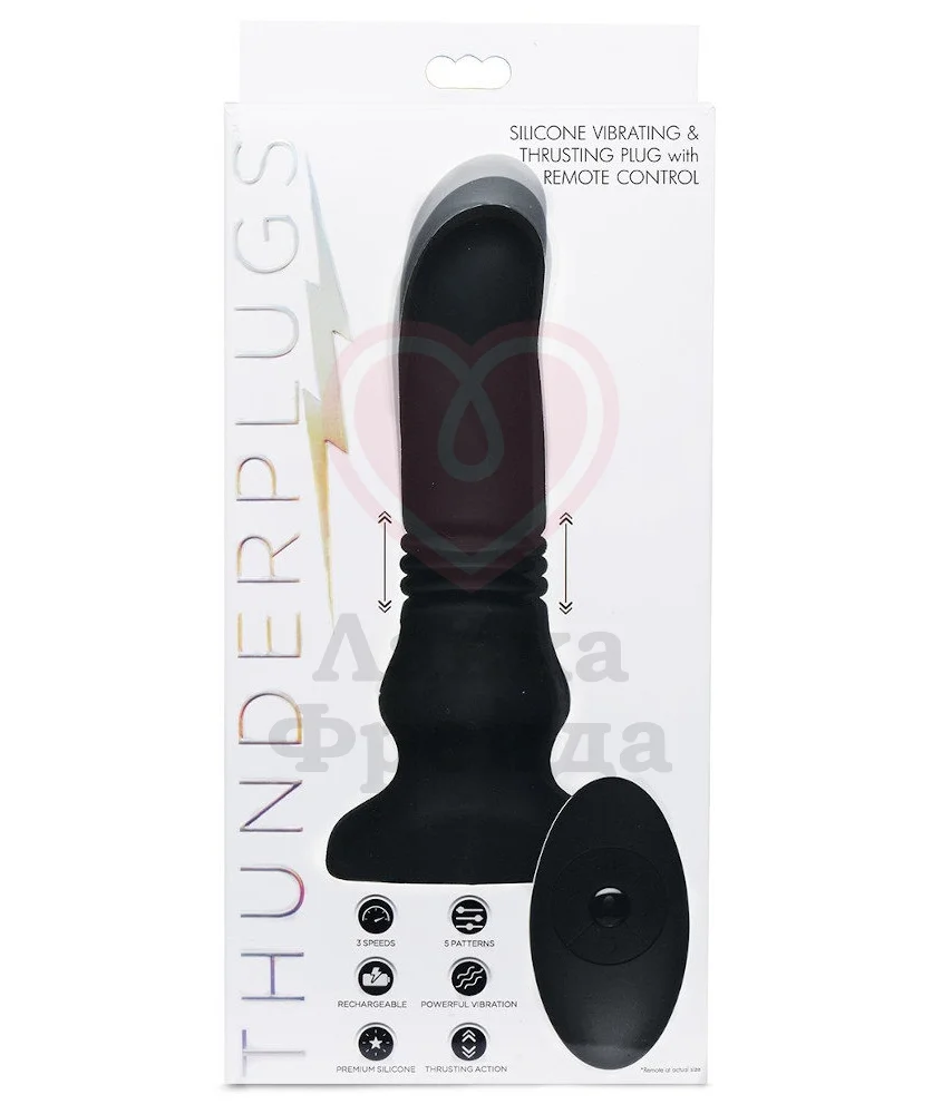 Thrusting Plug обладает не только 5 режимами и 3 скоростями вибрации, но также может совершать поступательные движения вверх-вниз — 5 видом пульсации обеспечат дополнительную стимуляцию, усиленную ребристой поверхностью. Управлять игрушкой можно также и при помощи специального пульта — который удобен как при соло, так и парном взаимодействии.